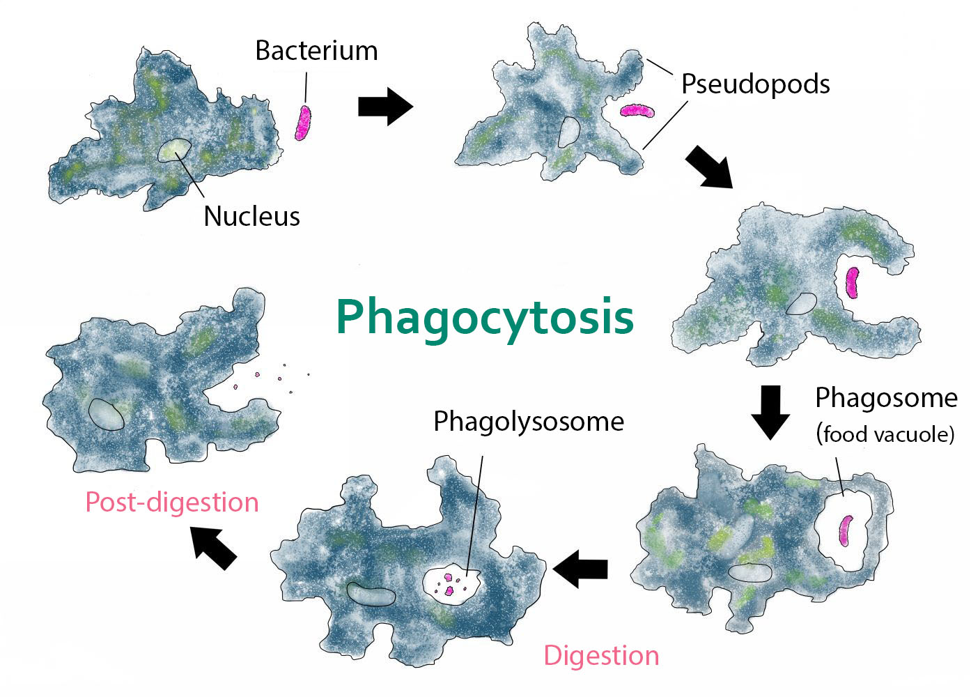 | Phagocytosis in an amoeba by Kate Taylor, CC0 public domain license |